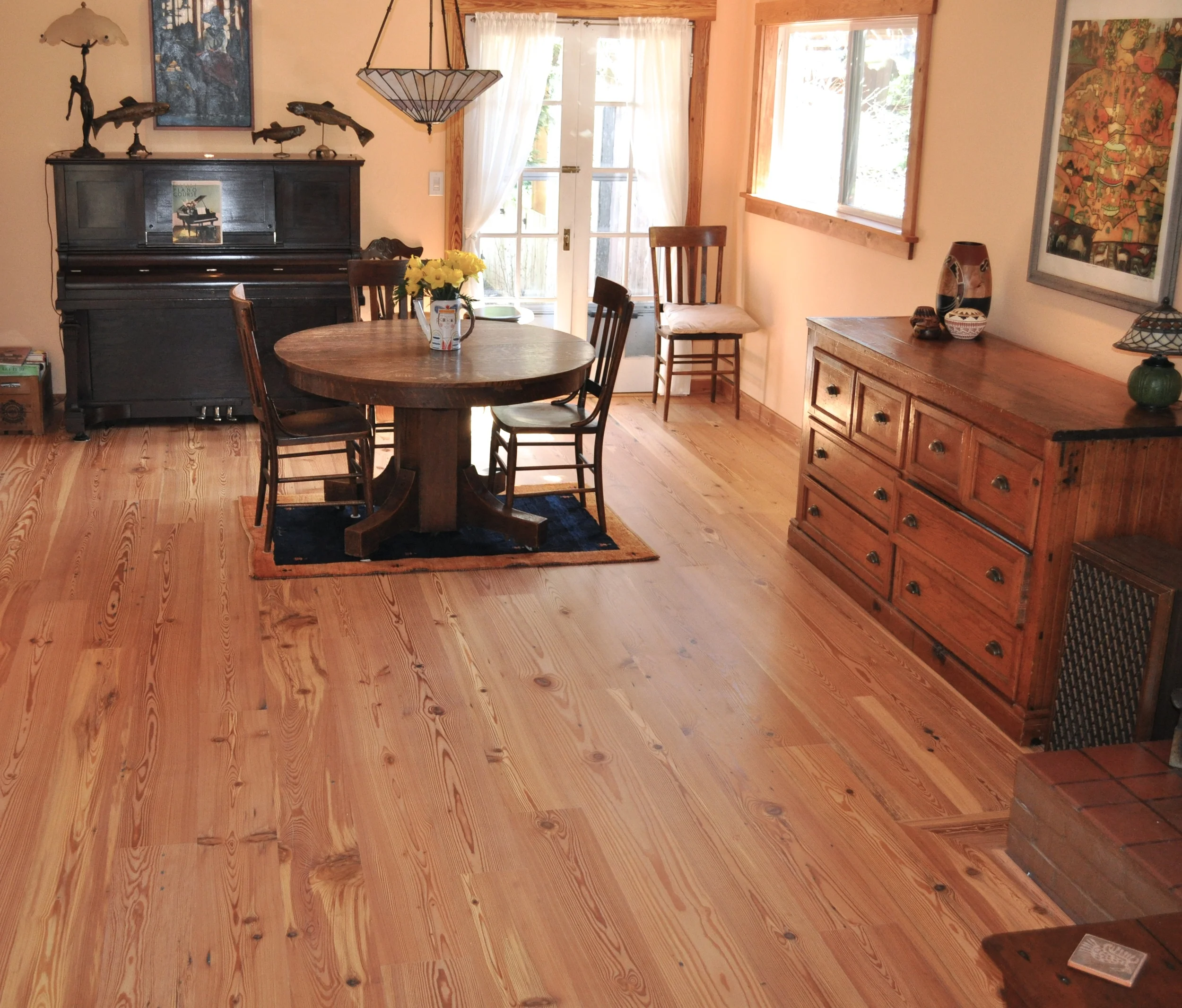 Antique heart pine with character. 8"w 2'-12'L Hardwax oil finish.